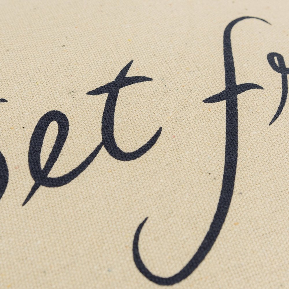 Find the freedom in faith with this thoughtfully designed Black Beige Canvas Set Free Still Throw Pillow in your modern living space. The beautifully printed phrase ‘set free’ in jade black is portrayed over a soft beige background, emphasizing simplicity and sophistication for a modern appeal. The pillow is printed on a lightly textured cotton canvas for softness and durability while the solid back comes with a hidden zipper closure for ease of fill and maintenance. The knife edging caters to clean and crisp corners, giving the pillow a polished look to work well with multiple interior styles and decors. The neutral shades combined with a spiritual sentiment make this pillow a perfect pick to evoke a sense of tranquility in your space with a modern edge. 20” x 20” x 6.25”