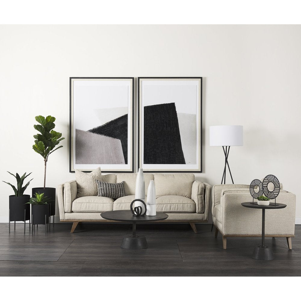 With this Black Metal Round Geometric Sculptureyou can add the perfect touch of art-inspired contemporary design to your home. This sculpture is made from solid metal and features a round shape sitting on a stand in a matte black color. The stand is a thin metal rectangle with two metal rods coming up from it. The circular shape has a hollow round middle with a geometric line design cut out in it. You can display this decor piece anywhere in your home without worrying about clashing colors or interior styles. Use it with similar decor pieces or as a stand-alone piece, it will look great nonetheless. 13" H x 3" W x 11" D