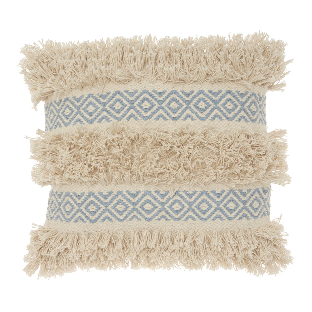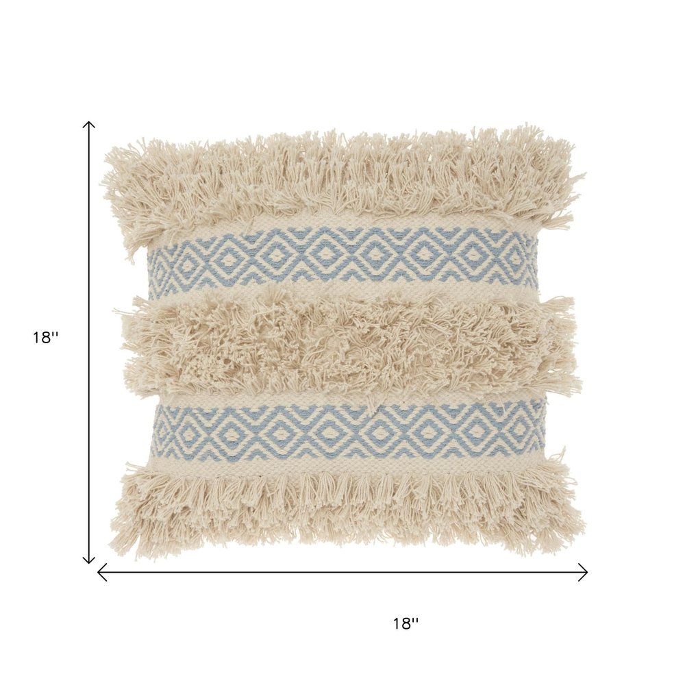 This blue diamond patterned throw pillow will add a beautiful decorative accent to your decor. This ocean hued piece represents quality construction, expertly made from durable cotton that is not only long lasting but soft to the touch as well. Super soft and built to hold its shape, this polyester pillow is a great option. Decorative throw pillows not only add color and dimension to your space but can be comfy and supportive when you are lounging and cuddling as well. A great decorative accessory for your favorite chair, to accent your sofa, or to use as part of your bed ensemble. 18-inch H x 18-inch W x 5-inch D