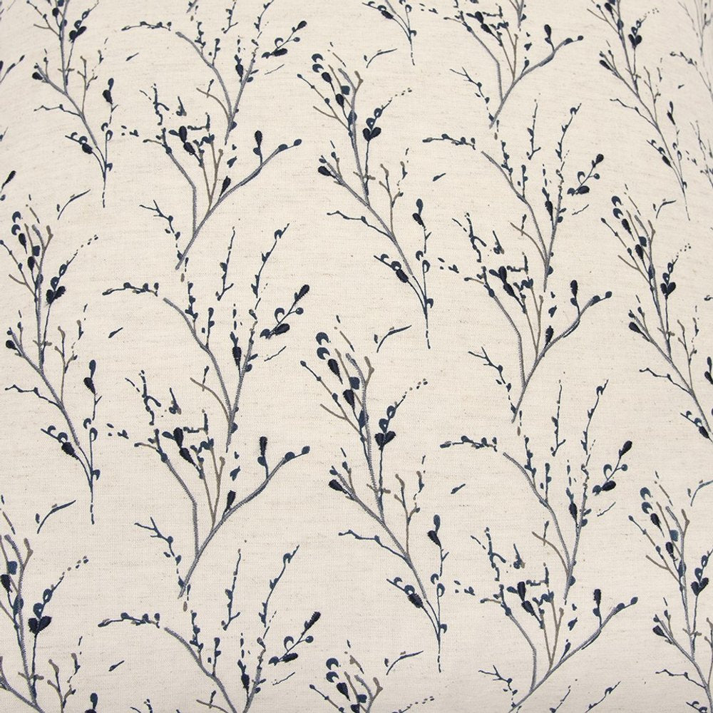 Flaunt your love of vintage style with this Blue Tiny Floral Buds Throw Pillow paired with your contemporary décor. A recurrent pattern of floral bud sprigs in a deep navy blue is embroidered on the cream-beige base that gives a botanical touch to the pillow with subtle elegance. Draped in a soft cotton material, the pillow has a polyfill insert that provides the utmost comfort and support to your neck and back. The pillow features welted borders for a sturdy outline and a solid cotton back with an enclosed zipper for ease of maintenance and cleaning. If you want a touch of nature amongst your contemporary décor, this throw pillow will bring the perfect balance of pattern and palette to your interior space. 20" x 20" x 6.25”