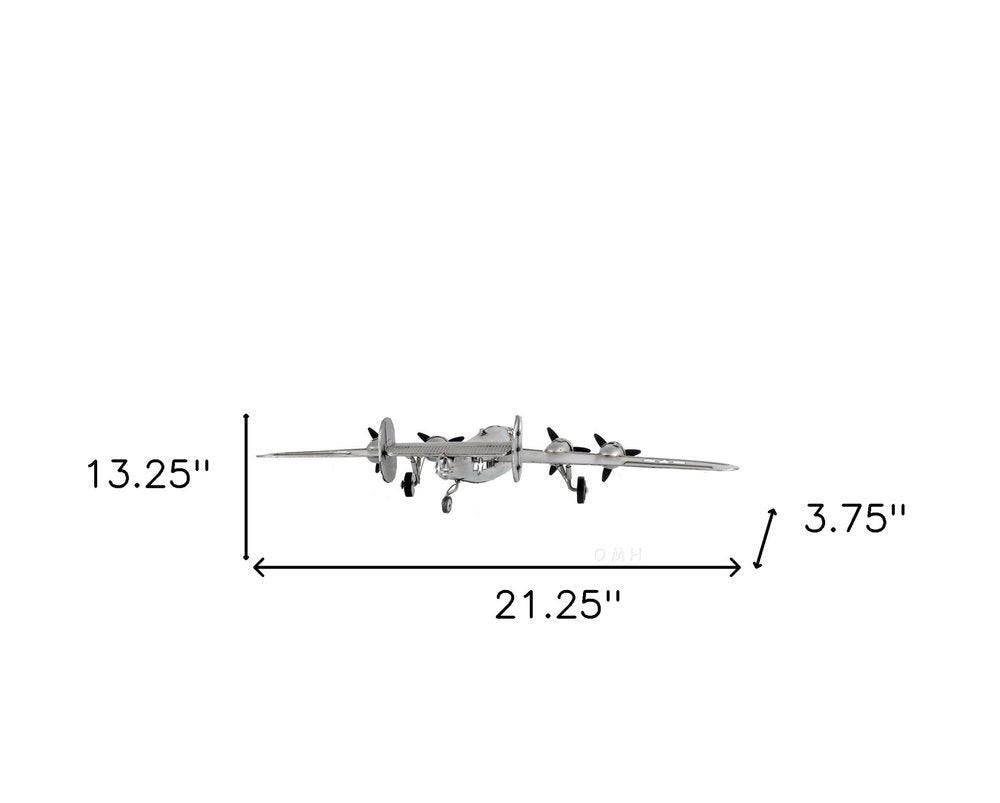 Authentic and super realistic, c1940 B-24 Liberator Bomber Sculpture is a replica of the No.1 heavy bomber of the U.S. Air Force during WWII. It was used for bombing raids in Europe and the Pacific. Made from a metal construction and a clean silver paint finish it is a remarkable collection piece. The rotating propellers and realistic Air Force decals make it super desirable for aviation and WWII enthusiasts. 3.75" x 13.25" x 21.25"
