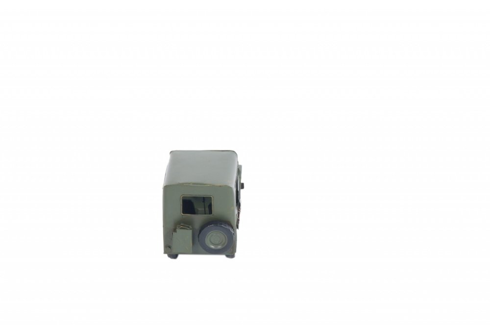 The amazing c1940 Willys Quad Overland Jeep Sculpture takes to the beginning of the Jeep American heritage. It pays homage to the first Willys Quad model that was delivered to the US Army at the beginning of WWII. Skilfully hand-made from metal, it features authentic exterior details as the convertible top, rolling wheels, spare tires, and a super cool U.S. Army decal on the hood. It is a perfect gift for car collectors and WWII enthusiasts. 6.5" x 11.5" x 5"