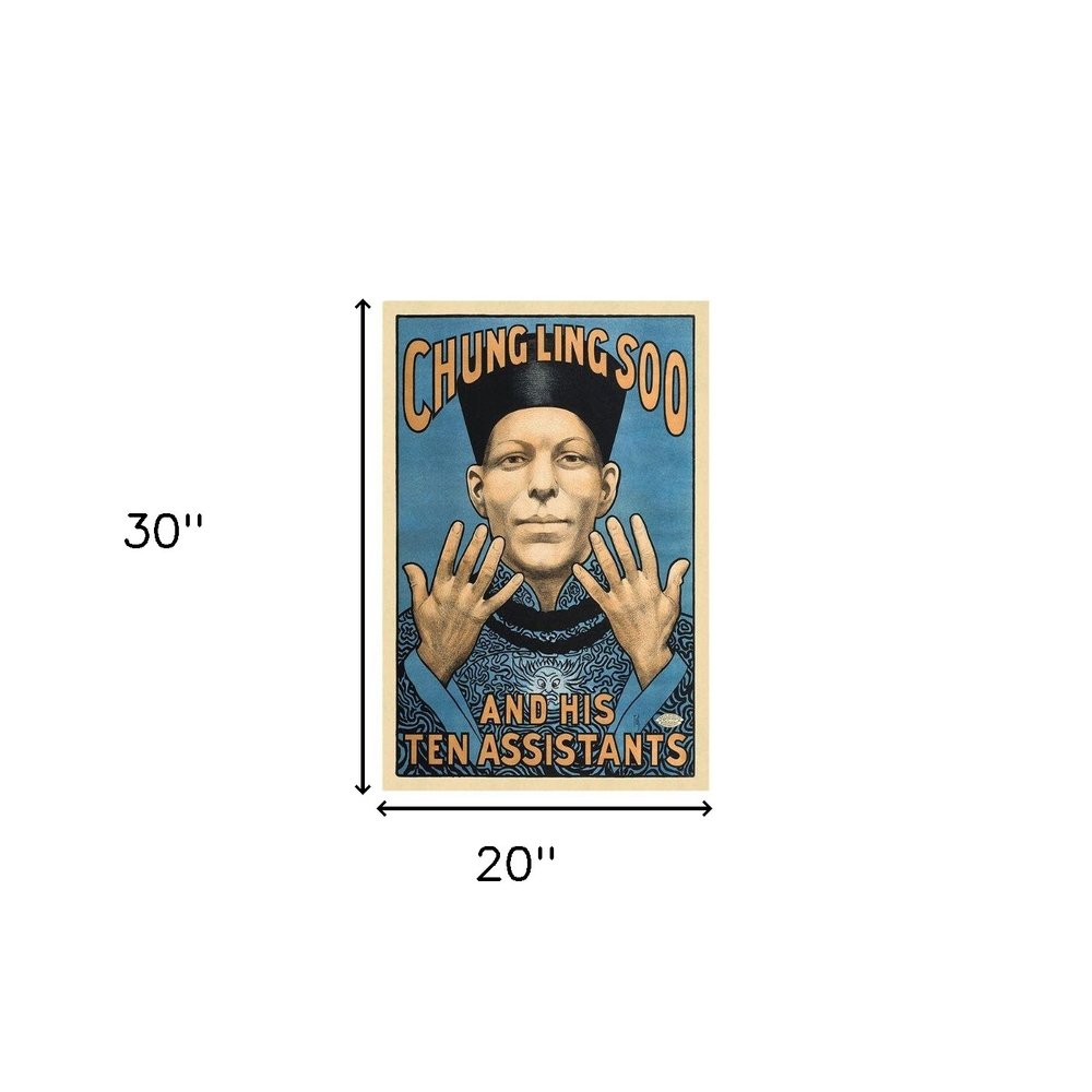 Add an air of fashion to your room and rejuvenate the space with this c1908 Chung Ling Soo vintage magic unframed print wall art. Unframed, this flat poster art has a fresh and distinct taste to grace your walls with style. Reproduced for you on paper, this hanging decorative accent features the famous magician with his 10 assistants that are actually his own fingers. Instantly liven up your space with this fun and mysterious art that brings color and dimension to your walls. 54 inches H x 36 inches W x 0.1 inches D