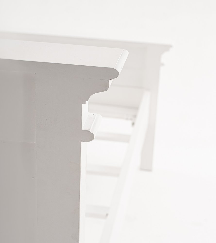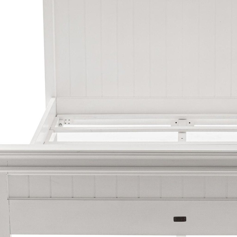 Practical and stylish, the Classic White Queen Size Bed is the perfect example of elegance and function. Sturdy and solid mahogany wood and MDF work together to create this quintessential structure. The semi-glossy white paint finish is luminous enough to brighten up any room. Owing to its finish, the bed is versatile to complement any type of decor or interior. The bed stands on four strong legs with a tongue and groove paneling on the head and footboard along with a flared cornice that contributes to the stability and unique appearance of the bed. 49.21" x 70.47" x 85.83"