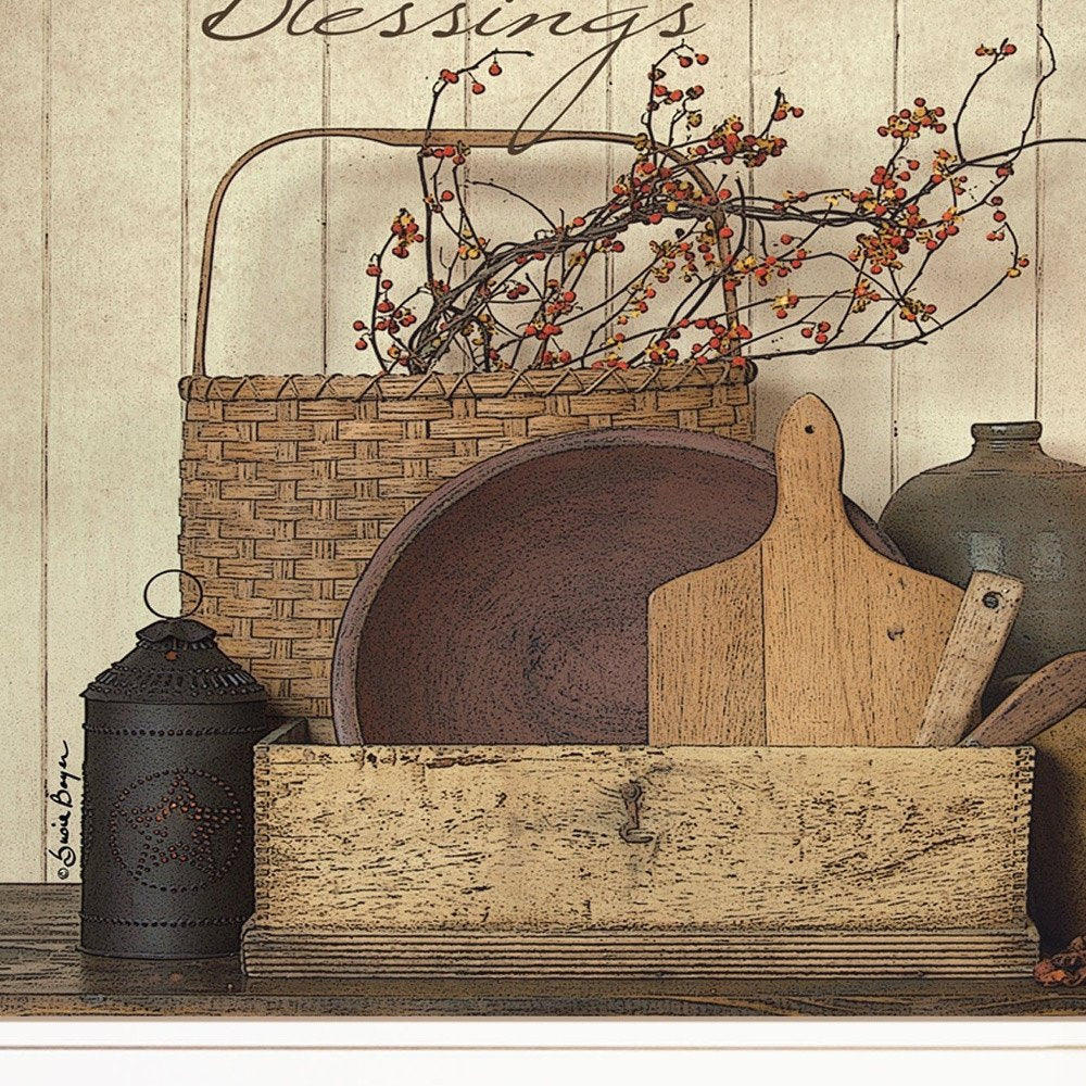 This count your blessing 1 white framed print wall art will add a beautiful decorative accent to your decor. This print is a visual artistic expression that allows you to decorate your space in style. Reproduced for you on paper, this hanging decorative accent will be a trendy and fashionable way to dress your walls. Hang on your wall to add some up to date fashion and decoration. Instantly liven up your space with this art that brings color and dimension to your walls. 19-inch H x 15-inch W x 1-inch D