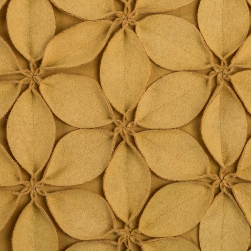 The visually intriguing texture of this Cream Pinwheel Floral Petal Throw Pillow will undeniably serve as an eye-catching accent in your living space. The pinwheel floral work is skillfully crafted in cream-white tone with intricate machine-stitched detailing on the wool felt petals to keep the shape intact for added dimension to the piece. Ideal for adorning any modern or contemporary home, this pillow is crafted from cotton fabric to ensure a soft hand with long-lasting durability. The solid coordinating back features a concealed zipper closure for ease of washing while the knife edge caters to a clean and sophisticated look. Meant to work well with various genres, this heavily textured throw pillow will set an inviting tone in the room without compromising style and comfort. 18” x 18” x 6.25”