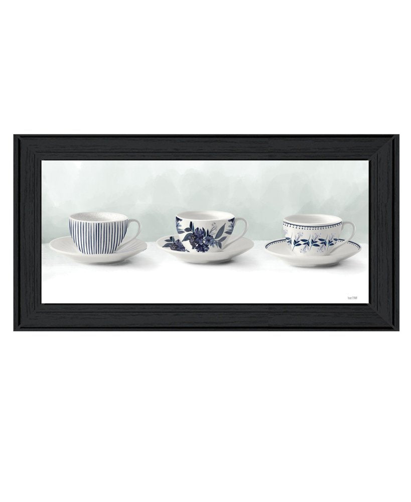 The cups and saucers 2 black framed print wall art is the perfect decorative accessory for your home. This print is a visual artistic expression that allows you to decorate your space in style. Reproduced for you on wood, this hanging decorative accent will be a trendy and fashionable way to dress your walls in a rustic and modern farmhouse vibe. Hang on your wall to add some up to date fashion and decoration. Instantly liven up your space with this art that brings color and dimension to your walls. 12-inch H x 21-inch W x 1-inch D