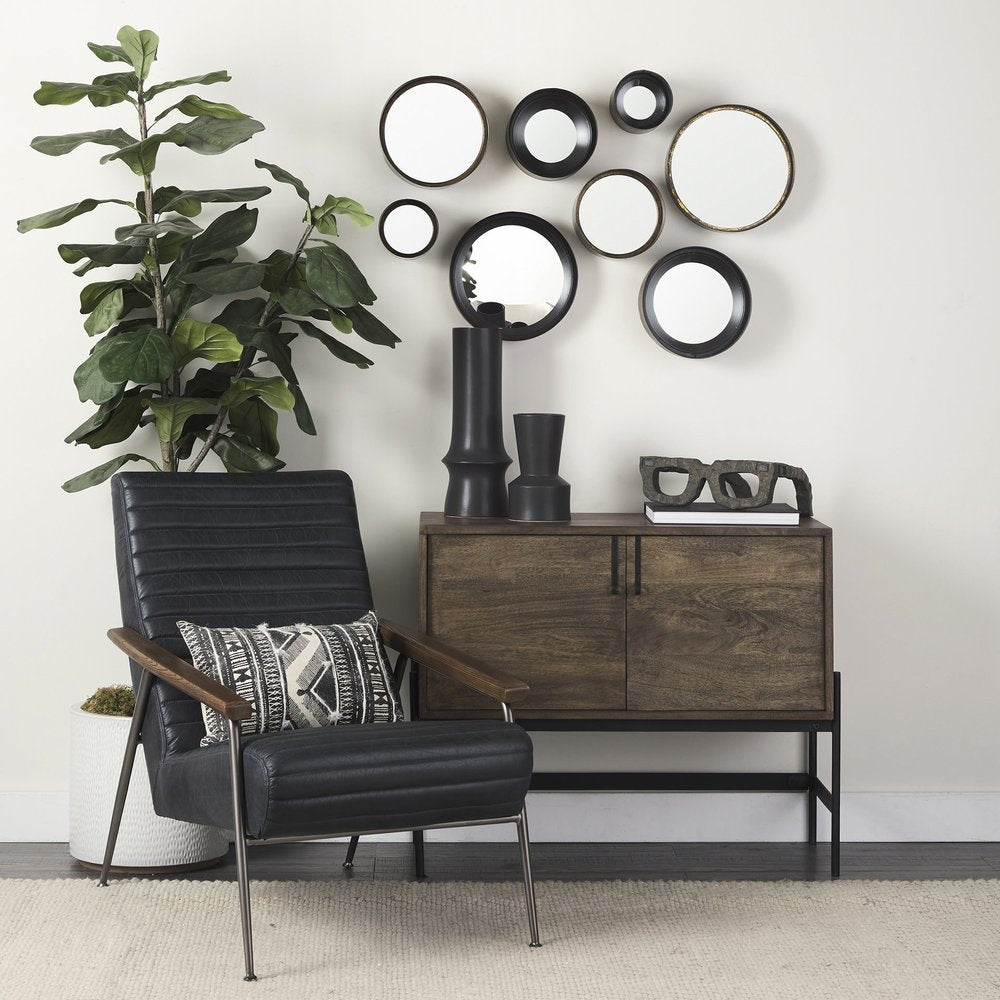 The Eugene Rustic Brown Wooden Eyeglass Sculpture allows you to add the perfect combinatin of whimsy and contemporary decor to your home. This decor piece is crafted in rustic and chunky cuts from solid wood and is shaped like reading eye glasses. The cool dark brown color of this piece adds to the whole contemporary look and will elevate any space you use it in. There are two small metal details on the rim where the handles are attached that finish it off. This whimsical yet unique decor piece can be used in any room. 5" H x 14" W x 13" D