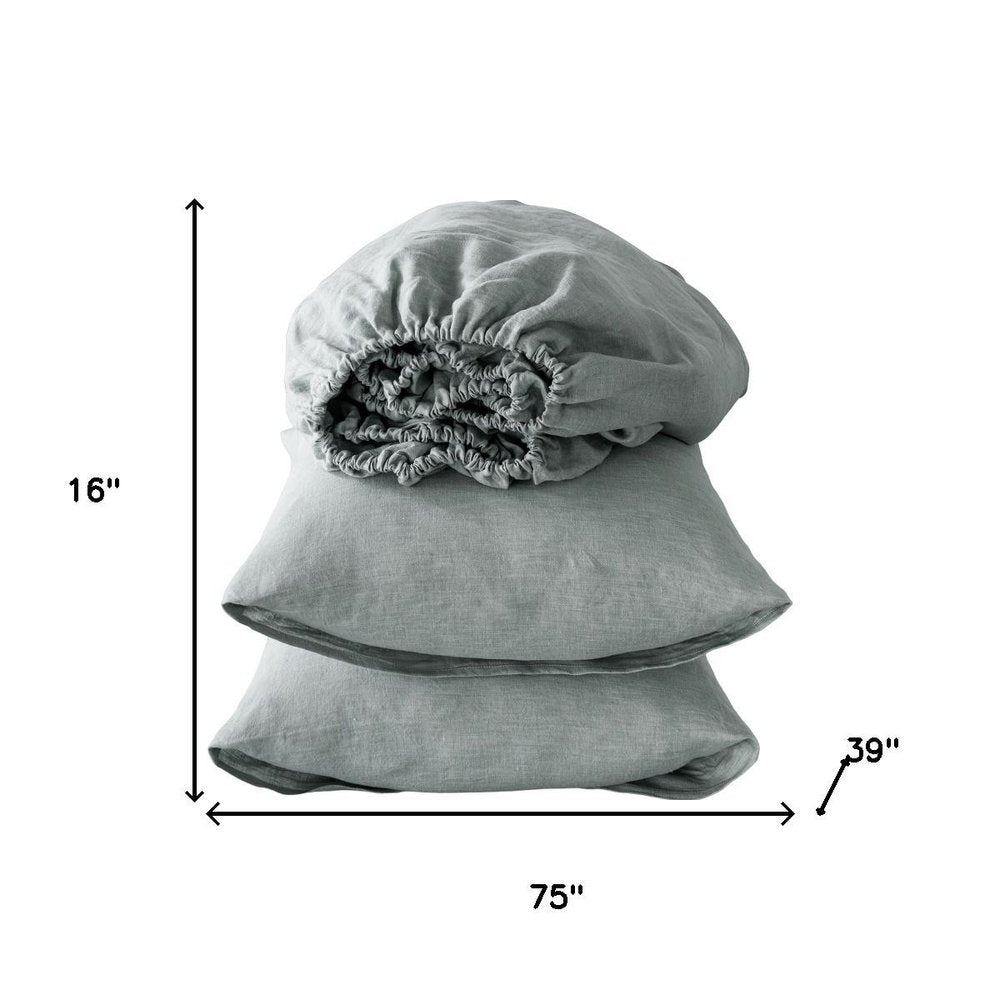 Four Piece Blue Linen Twin Sheet Set