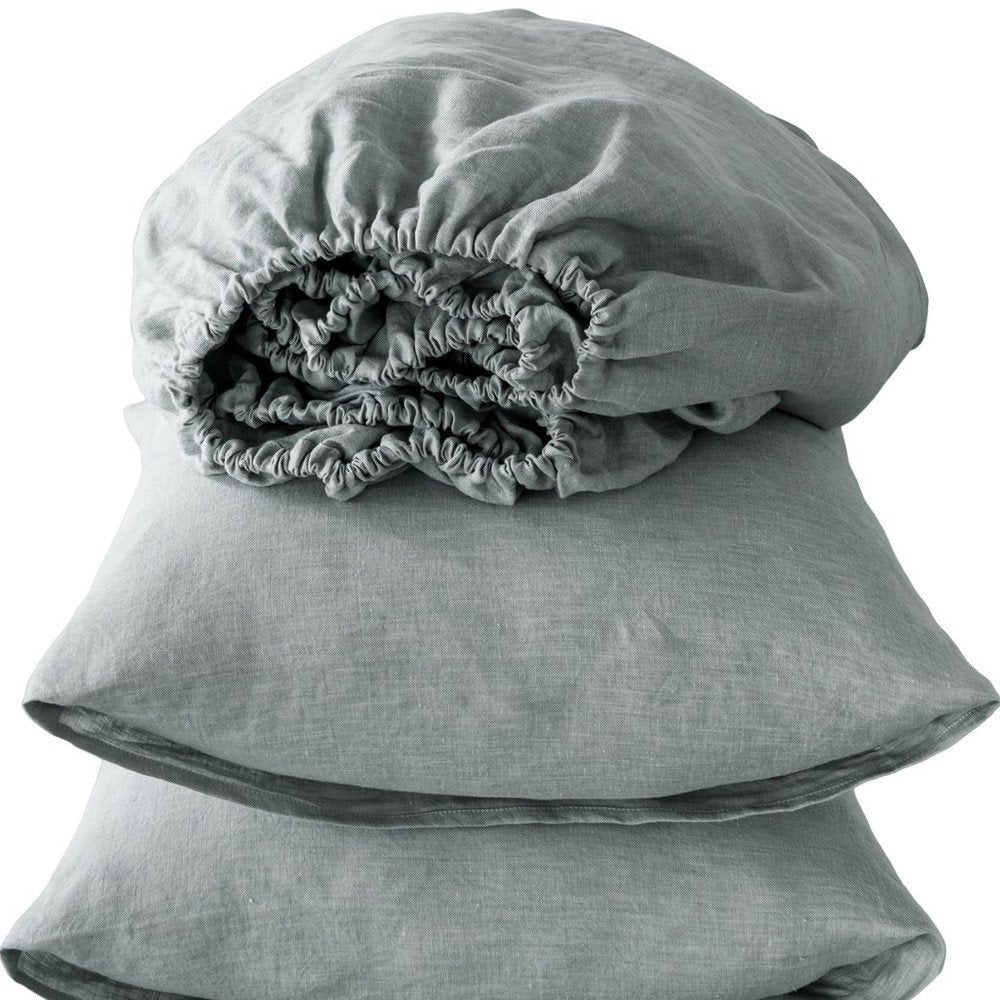 Experience a blissful night’s sleep with this four piece blue linen twin. Indulge in simplicity and serenity with these exquisite solid color bed sheets. Crafted from premium quality linen that is known for its moisture wicking properties to keep you cool and comfortable, these sheets are a luxury but so worth it. They are breathable, have a soft thick texture that will get softer over time, and are wrinkle resistant (not wrinkle free). Whether for yourself, family, or guests, having the right sheets is a critically important part of a good night’s sleep. 16-inch H x 75-inch W x 39-inch D