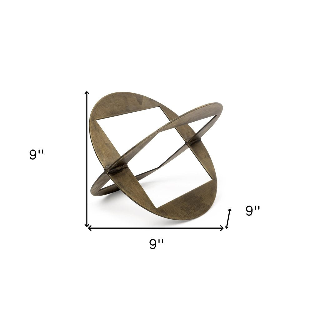 With this Gold Metal Geometric Decor Piece you can add just the right touch of unique modern design to the decor in your home. This decor piece is made from solid metal and features two circle shapes that have square cut outs intersecting at two different points. This intersection creates an X-shaped decor piece that plays with different shapes but still keep its modern and minimal look intact. This decor piece has a matte burnished gold finish on it and can be used anywhere in your home no matter what interior style or colors you already have. You can also place this decor piece near a window or a light source and enjoy the slight and elegant shapes that are projected through it in a stunning gold shade. 9" H x 9" W x 9" D