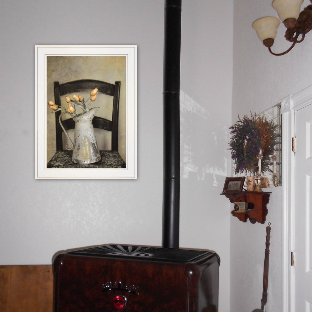 Bring some sizzle to your space with this eye-catching golden tulips 1 white framed print wall art. This print is a visual artistic expression that allows you to decorate your space in style. Reproduced for you on paper, this hanging decorative accent will be a trendy and fashionable way to dress your walls. Adding this hanging wall art to your space to make your room feel more finished and attractive. Utilize this opportunity to create a focal point in the room with this fabulous wall decor option. 19-inch H x 15-inch W x 1-inch D