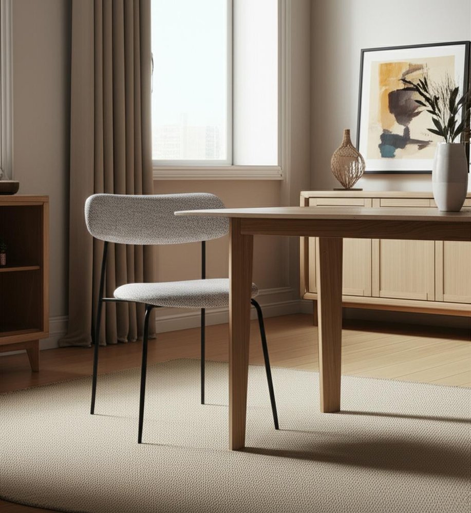 Gray and Black Upholstered Fabric And Metal Open Back Dining Side Chair