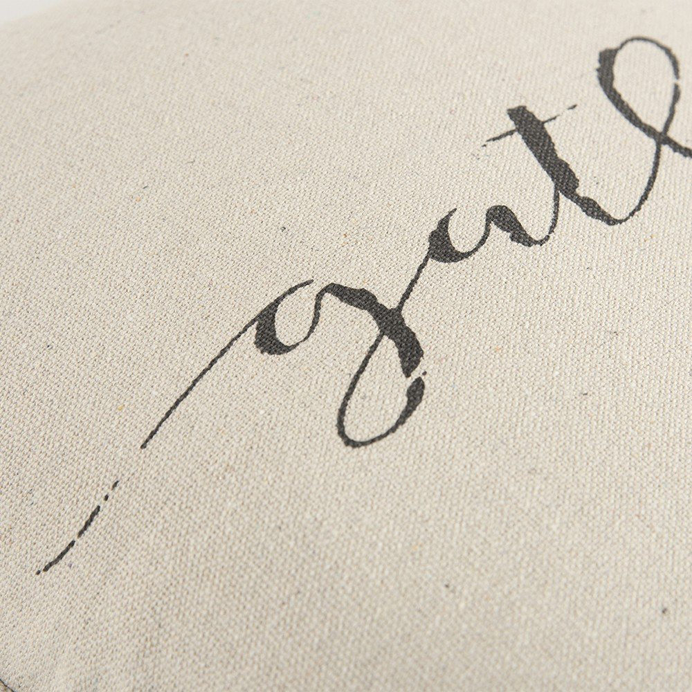 Simply stated, this Gray and Cream Canvas Gather Decorative Throw Pillow, features a modern yet distressed gray font with the word "gather". This good looking and neutral accent pillow can work with multiple design styles and is the perfect way to bring a little bit of flair to your space without over powering. Generously sized, this 20" x 20" decorative accent pillow features a solid back with a hidden zipper closure for convenience.