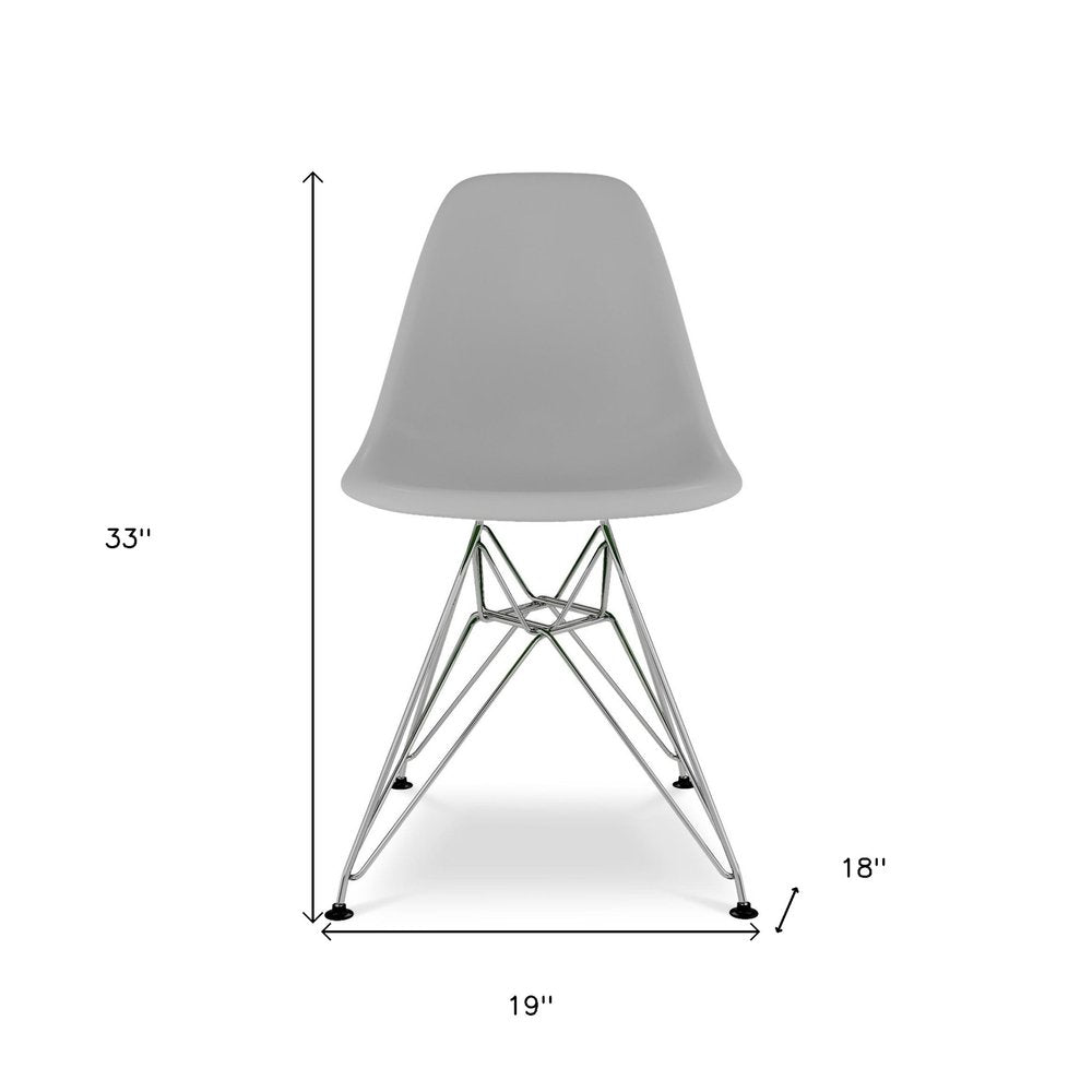 Bring this comfortable gray and silver steel dining side chair to your table to enjoy long lasting quality time with your family and friends. This armless chair has a sleek silhouette making it ideal for seating around the table but can also double as an accent chair. Complete with solid back, this chair not only looks good but is comfortable. Dining chairs are a great way to compliment your kitchen or dining room but can also be used in the foyer, hallway, or any room you might need extra seating. 33-inch h x 19-inch w x 18-inch d.