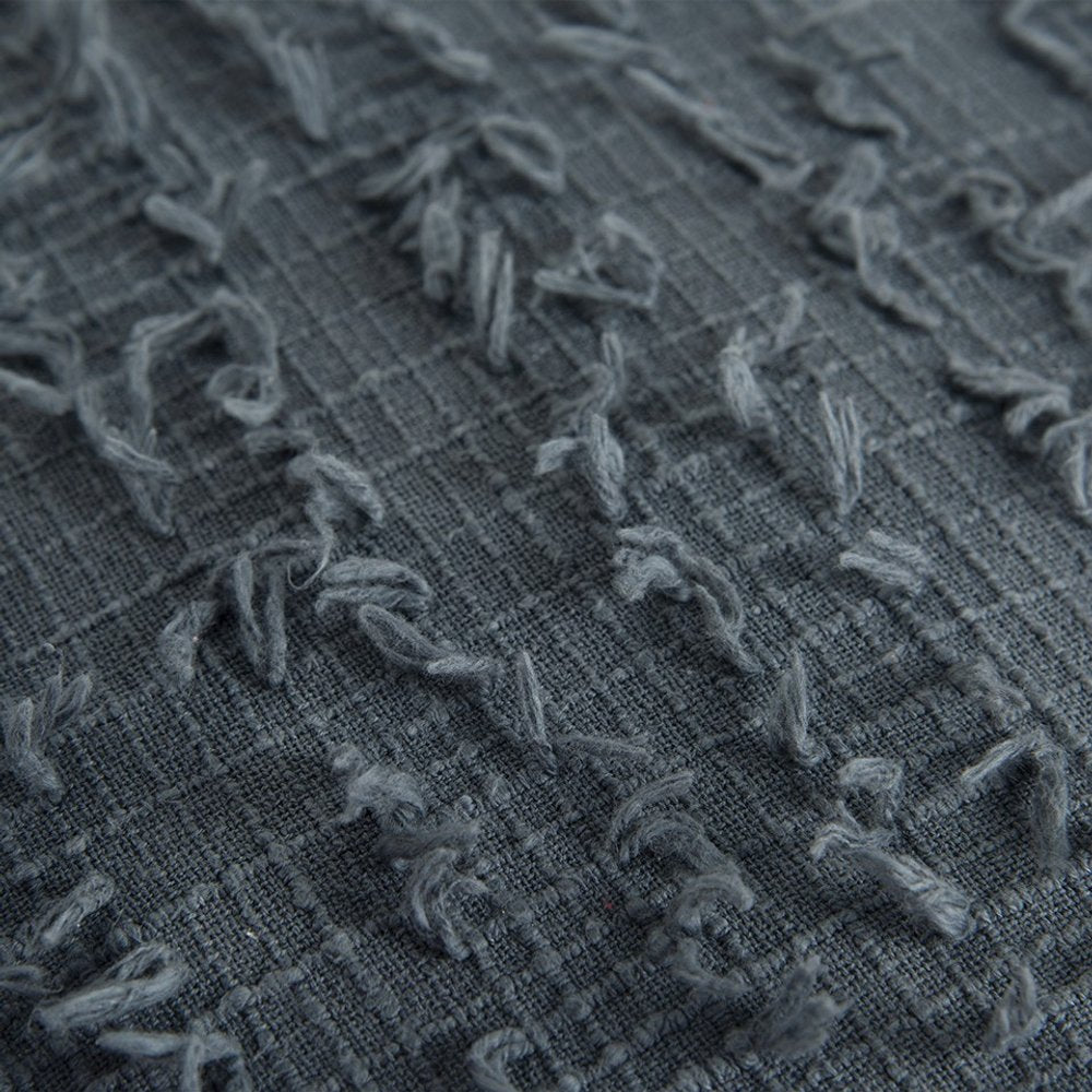 Bring an artful modern classic appeal into your living space with the addition of this Gray Tasseling Fringe Texture Throw Pillow in the room. The textured gray-toned base hosts woven cotton strands which are clipped and left as taselling fringe to add dimension to the piece with an artisanal look. The pillow is crafted from textured cotton fabric to ensure softness and durability while the polyfill insert gievs the pillow a fluffy appearance. The knife-edging is meant to emphasize clean and crisp corners, making the pillow an ideal fit for a variety of interior styles and decors. The pillow features a solid cotton back with a concealed zipper for convenience. If you want a solid colored accent that stands out in style and simplicity, opt for this textured decorative throw pillow to pair with your interior décor. 20” x 20” x 6.25”