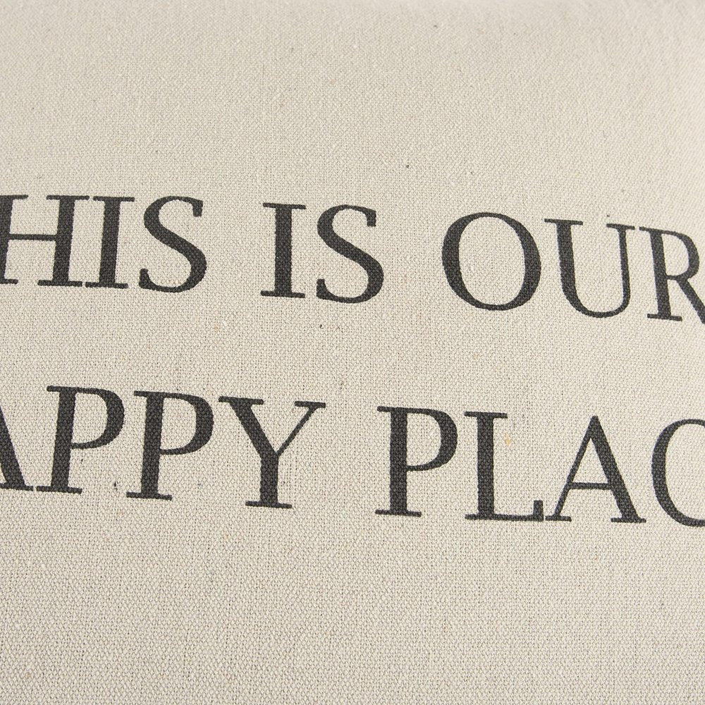 Make your heart feel at peace and happy with the addition of this Gray Taupe Canvas Happy Place Throw Pillow in your living room. The beautifully bold modern font stating ‘This Is Our Happy Place’ in a trout gray over a taupe base, the pillow symbolizes your love for your home while giving a modern essence to the piece. The lightly textured cotton fabric gives a cozy feel on the touch while the self-flange edges prevent fraying, making the pillow a suitable accent for a range of interior themes. This poly-filled pillow features a removable cover for easy cleaning. Convey your love for your happy home with the addition of this decorative throw pillow in the room. 20” x 20” x 6.25”