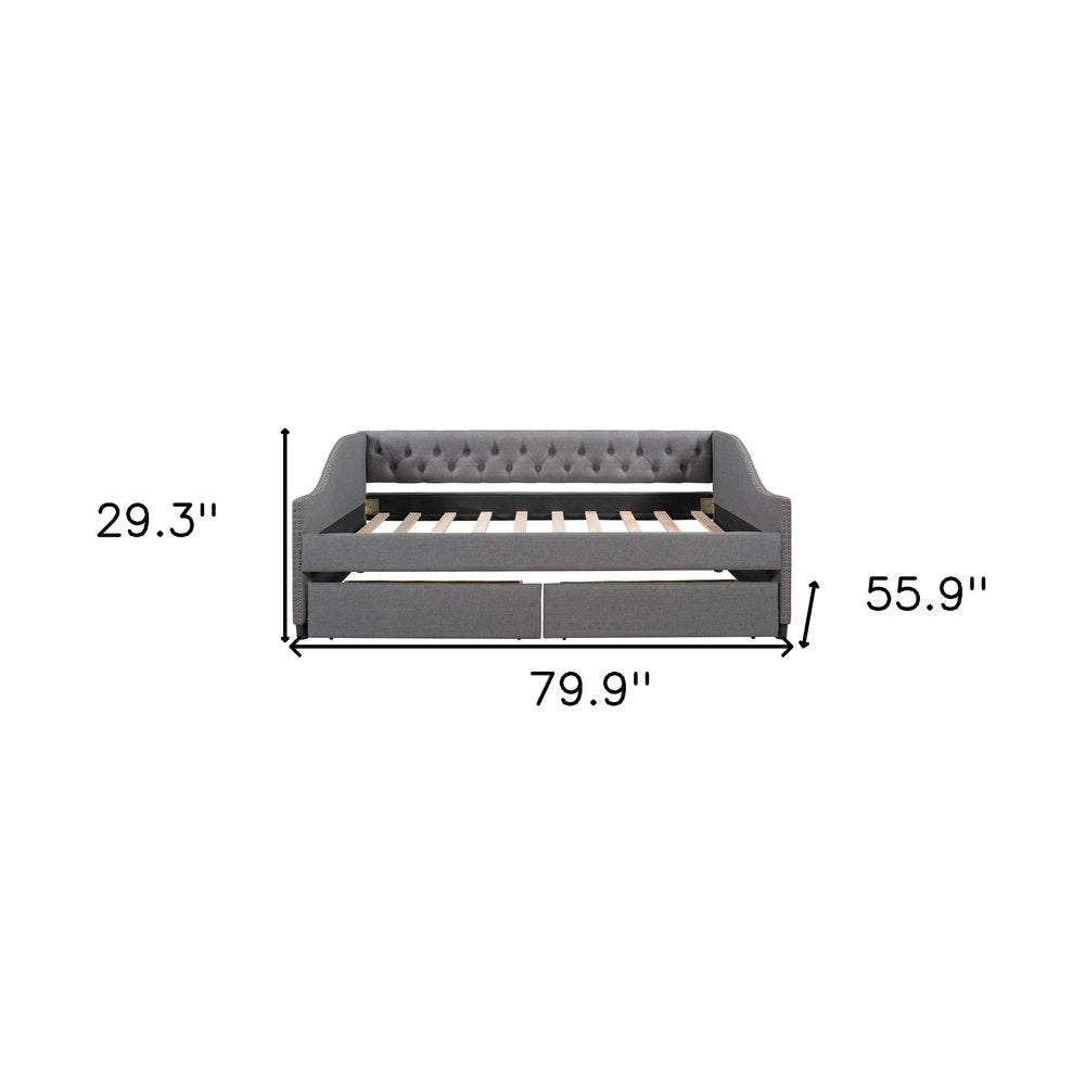 Gray Upholstered Full Bed Frame With Drawers