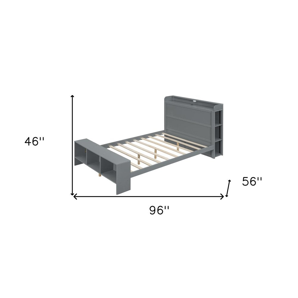 Gray Wood Full Bed Frame With LED Lighting And USB