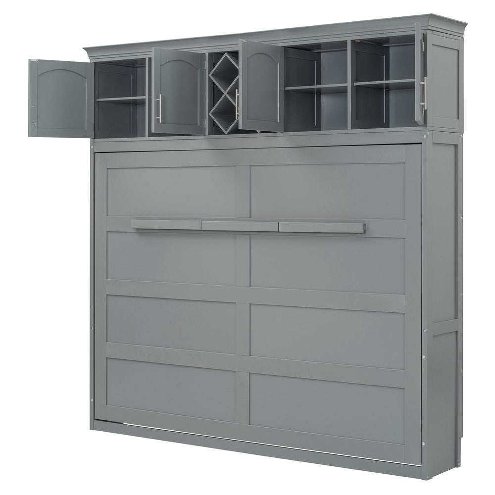 Add a luxuriously appointed bed that will help you create an oasis of comfort and relaxation in your home with this gray wood queen murphy bed. Built to last, this piece not only looks good but reflects premium workmanship from top to bottom. Quality craftsmanship in every facet of production ensures durability and long-lasting wear. This bed will help to create a peaceful environment that will provide restful slumber for years to come. 90.5-inch h x 88-inch w x 68.1-inch d.