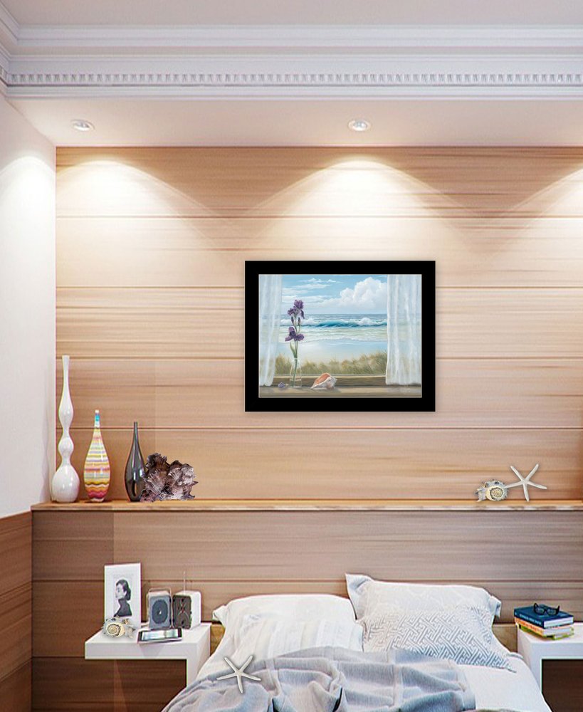 This irises on windowsill black framed print wall art will add a beautiful decorative accent to your decor. This print is a visual artistic expression that allows you to decorate your space in style. Reproduced for you on wood, this hanging decorative accent will be a trendy and fashionable way to dress your walls in a rustic and modern farmhouse vibe. Hang on your wall to add some up to date fashion and decoration. Instantly liven up your space with this art that brings color and dimension to your walls. 14-inch H x 18-inch W x 1-inch D