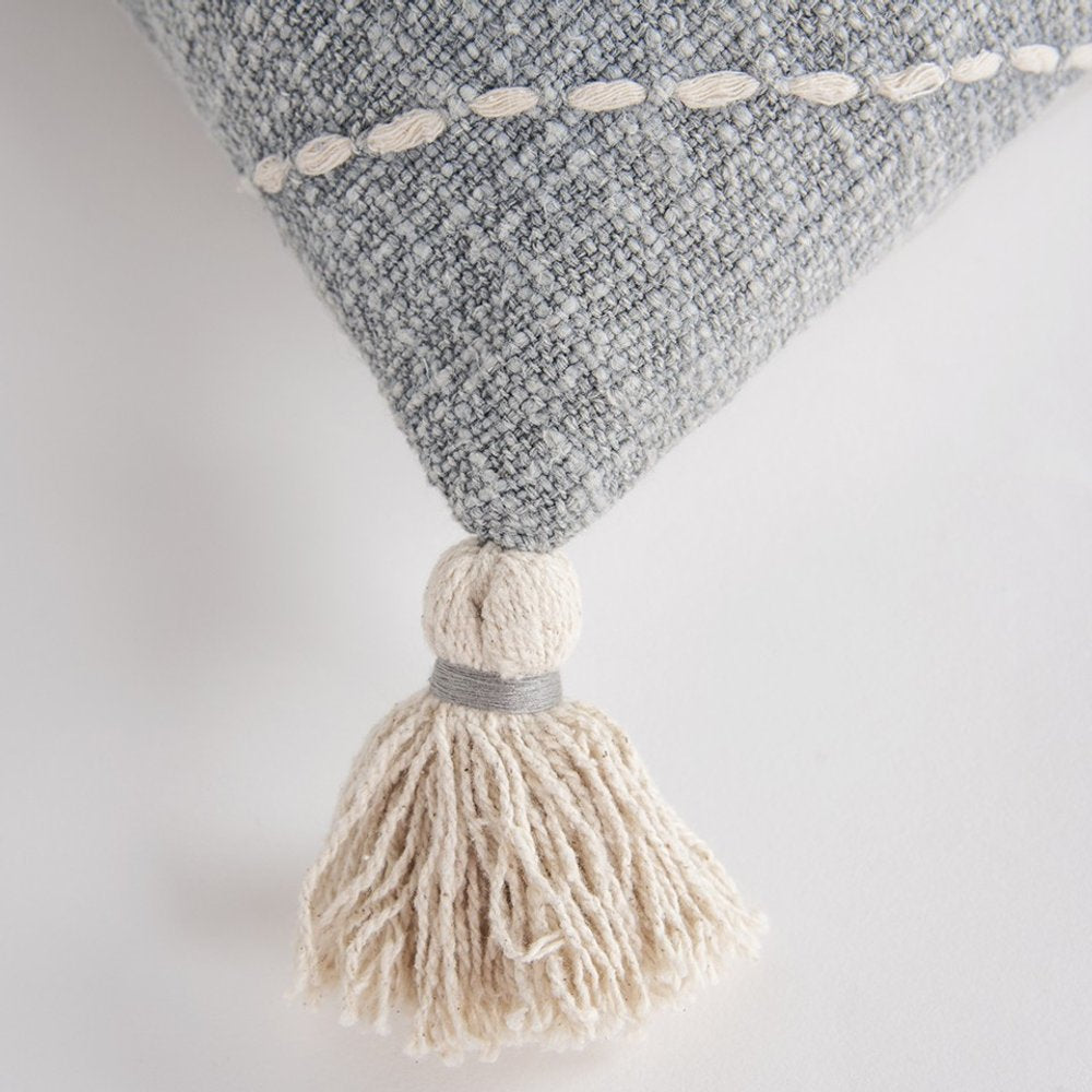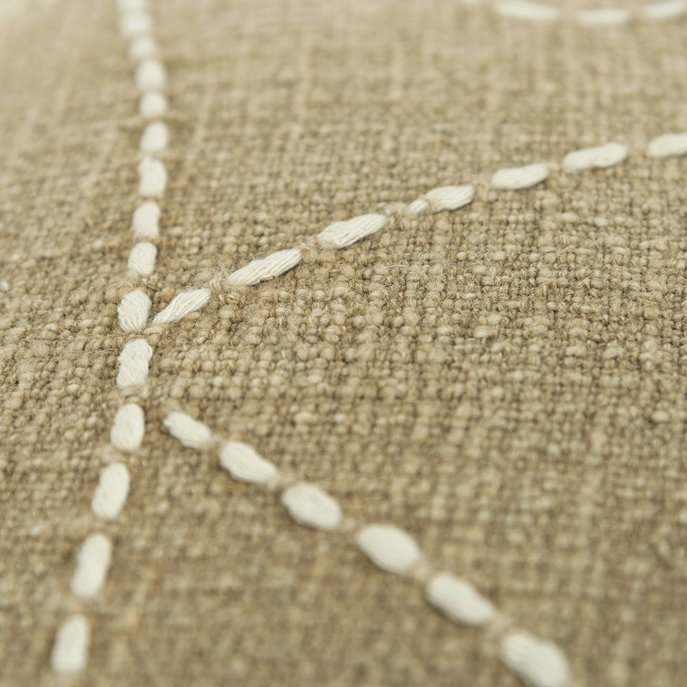 Khaki Cream Kantha Stitch Tasseled Throw Pillow