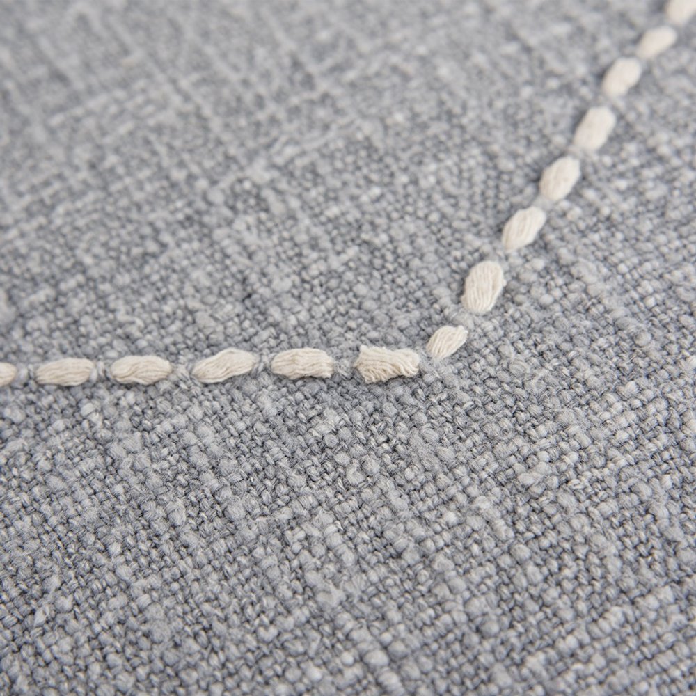 This effortlessly simple Khaki Cream Kantha Stitch Tasseled Throw Pillow is the classic décor item to flaunt your modern farmhouse aesthetic. The khaki pillow is hand-stitched in an impressionistic pattern with four cream-colored corner tassels for visual interest. Constructed with a cotton fabric, the pillow is very durable, with a coordinating solid back hiding a zipper closure for ease of cleaning. The pillow includes a polyfill insert that provides a soft and fluffy appearance. Knife-edged, the pillow has crisp borders giving it a polished appearance that goes well with most interior styles. Add an element of asymmetry in your home with this naturalistic throw pillow that exudes a farmhouse style that pairs perfectly with modern and contemporary décor. 18" x 18" x 6”