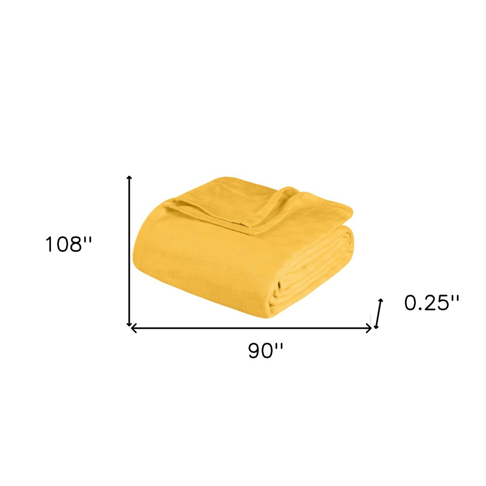 This king gold cotton basketweave geometric blanket is a cozy and stylish addition to your bed ensemble. A classic and timeless design combines with cozy comfy style so this cotton blanket can deliver you a restful and comfortable sleep all year long. Enhance your space and the quality of your sleep with this soft and comfortable blanket that helps regulate your core body temperature, helps you to relax, and ultimately fall to sleep. 108-inch h x 90-inch w x 0.25-inch d.