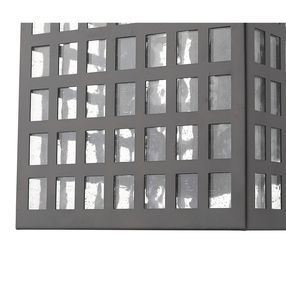 Though there are squares, Letzel is not square. A framework of steel in a continuous grid pattern combines with clear, seedy glass. Letzel is available in oil-rubbed bronze and satin nickel.