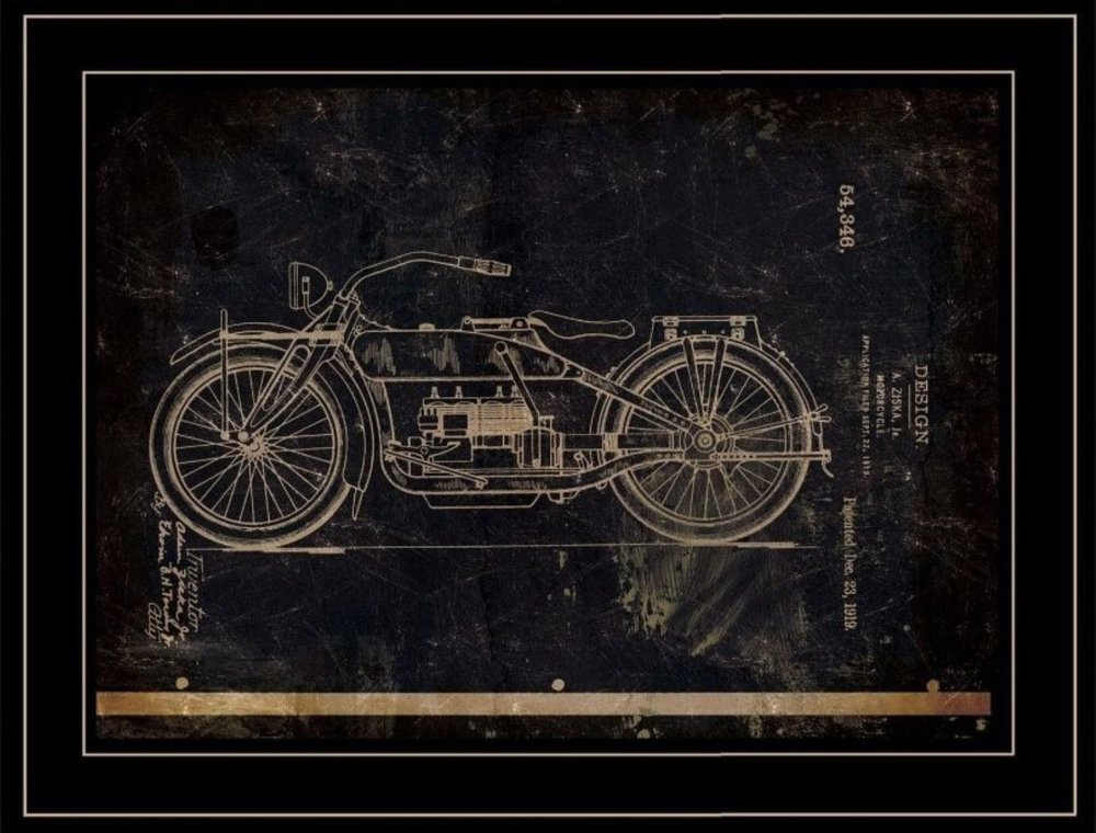 The motor bike patent i 2 black framed print wall art is the perfect decorative accessory for your home. This transportation inspired wall art features a motor bike icon and will bring a refreshing look and perspective to your walls. This print is a visual artistic expression that allows you to decorate your space in style. Reproduced for you on paper, this hanging decorative accent will be a trendy and fashionable way to dress your walls. Hang on your wall to add some up to date fashion and decoration. Instantly liven up your space with this art that brings color and dimension to your walls. 19-inch H x 15-inch W x 1-inch D