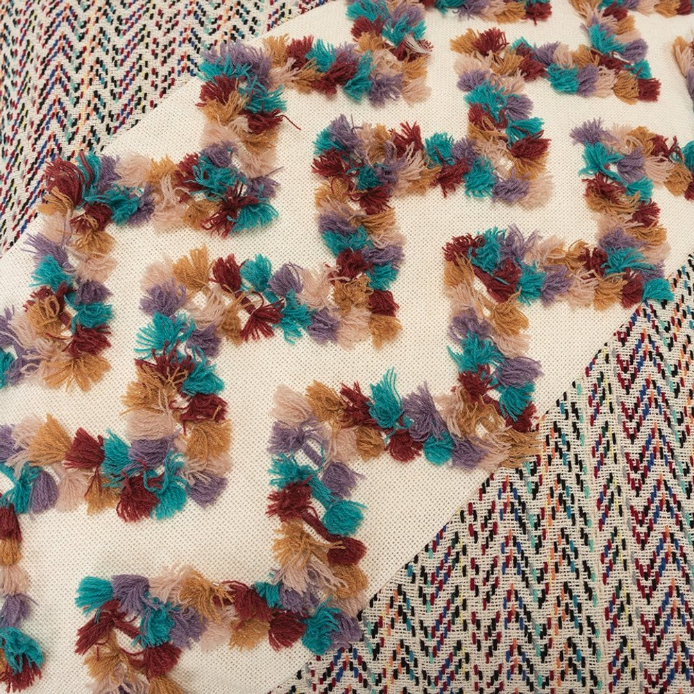 Colorful and dramatic, this vibrantly woven Multicolored Chevron Diagonal Panel Throw Pillow is sure to bring a glamorous style with a traditional essence to your home. Laden with unique elements, the color blocking of the pillow features chevron multicolor prints diagonally on either side with a center chevron weave using colorful threads in a boho style. Constructed with a soft cotton fabric, the back of the pillow is solid with a hidden zipper closure for ease of cleaning. The pillow comes with a polyfill insert to provide maximum comfort and fluffiness that promotes good posture. Emphasize the traditional aspects of your home with the addition of this vibrant throw pillow that will induce a bohemian vibe. 20" x 20" x 6.25”