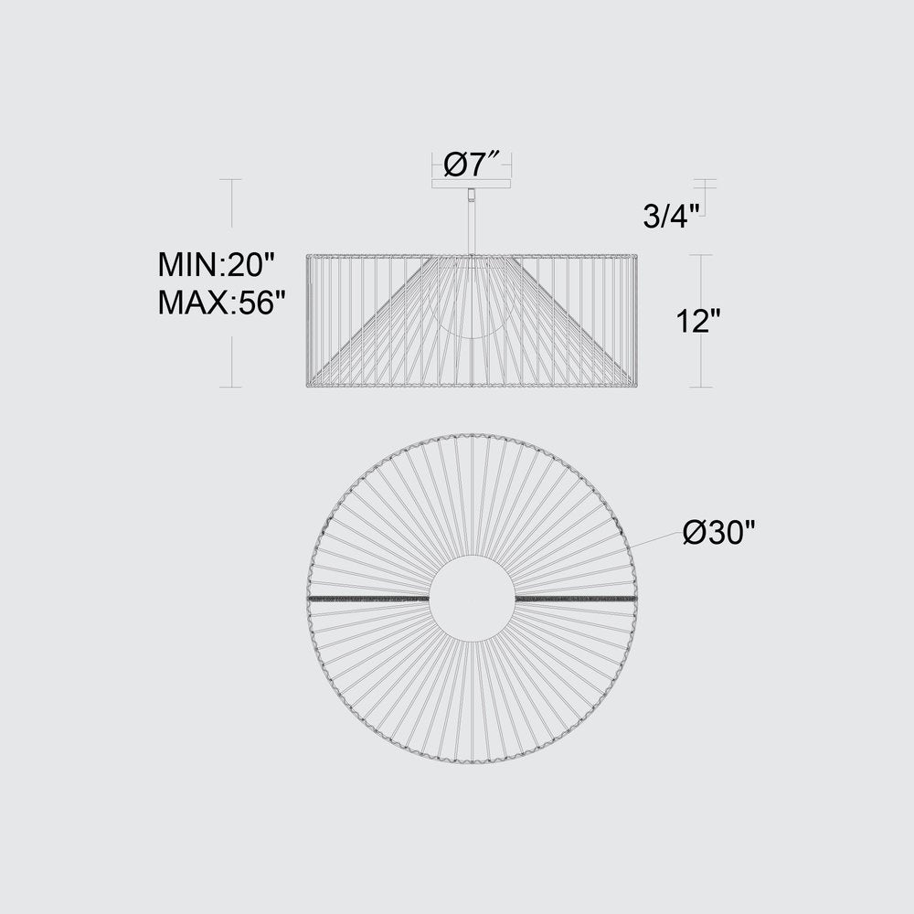 The natural and black rattan and metal led dimmable outdoor hanging pendant light adds a touch of elegance to your outdoor space. This stylish light embraces a transitional style that seamlessly blends natural elements with contemporary design. Rated for wet climates and locations, this versatile light can be used outdoors or indoors, making it a great option for your porch, patio, poolside gazebo, but also for your bathroom, kitchen, or hallway. Its matte finish and woven geometric lines rattan shade creates a modern boho look that enhances any setting. With integrated LED technology, this pendant not only provides efficient lighting but also adds a stylish flair. Its stylish combination of natural rattan and metal elements creates a unique aesthetic that elevates any environment, inviting cozy gatherings under its warm glow. 12.00-inch h x 30.00-inch w x 30.00-inch d.