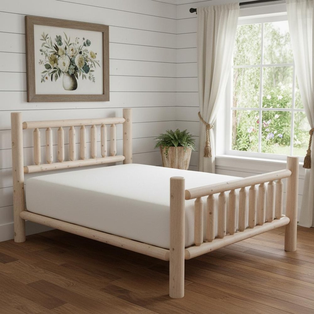 Natural Light Honey Finish Low Post Cedar Log Twin Bed