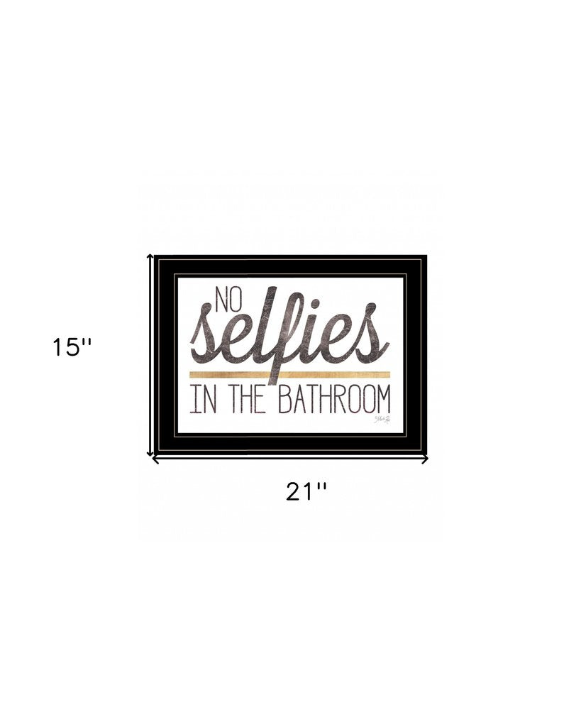 Unique and decorative, this no selfies in the bathroom 6 black framed print bathroom wall art will leave a lasting impression. This print is a visual artistic expression that allows you to decorate your space in style. Reproduced for you on wood, this hanging decorative accent will be a trendy and fashionable way to dress your walls in a rustic and modern farmhouse vibe. Hang on your wall to add some up to date fashion and decoration. Instantly liven up your space with this art that brings color and dimension to your walls. 15-inch H x 21-inch W x 1-inch D
