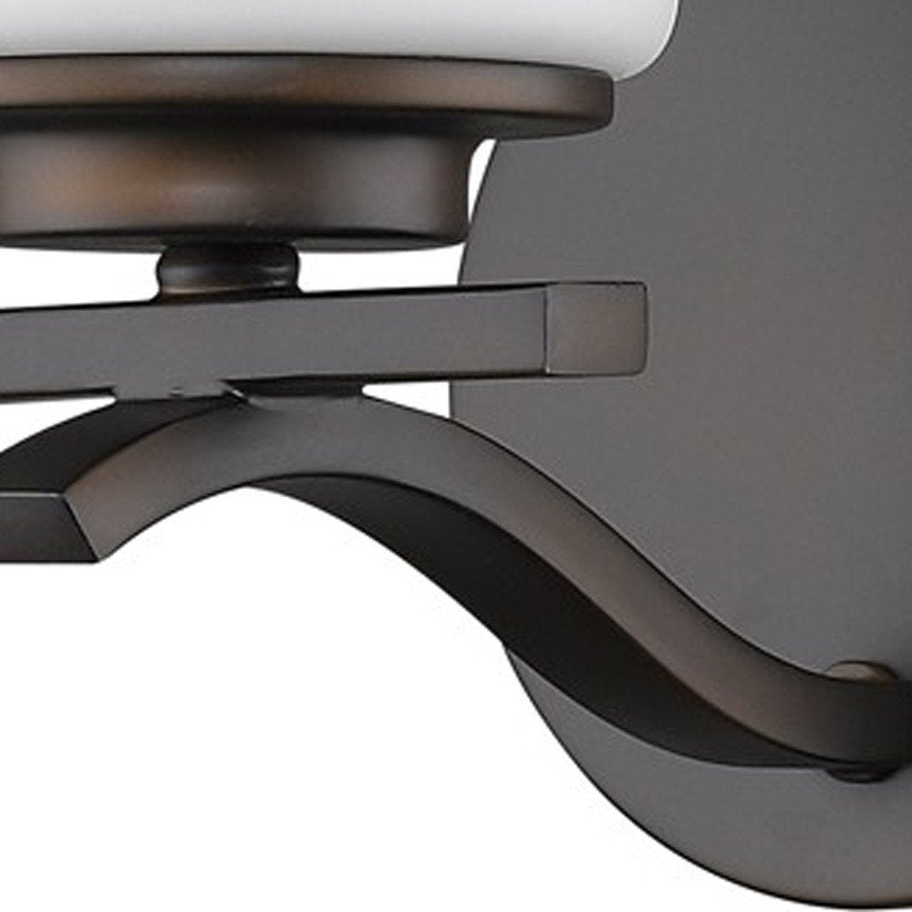 Add lighting to any room in style with this One Light Bronze and Glass Wall Sconce. The wall bracket has a simple round shape with a curved flat rod attached to it. The curved rod has a horizontal rod on top of it which is then attached to the base of the main light. The hardware is colored to a brushed bronze color. The shade of the light is made from frosted white glass and is in the shape of a rounded rectangle. This wall sconce can be used with any colors or styles you may already have in your home. Use it as a statement piece or in groups to elevate the look of any room. 9.75" H x 5" W x 6.5" D