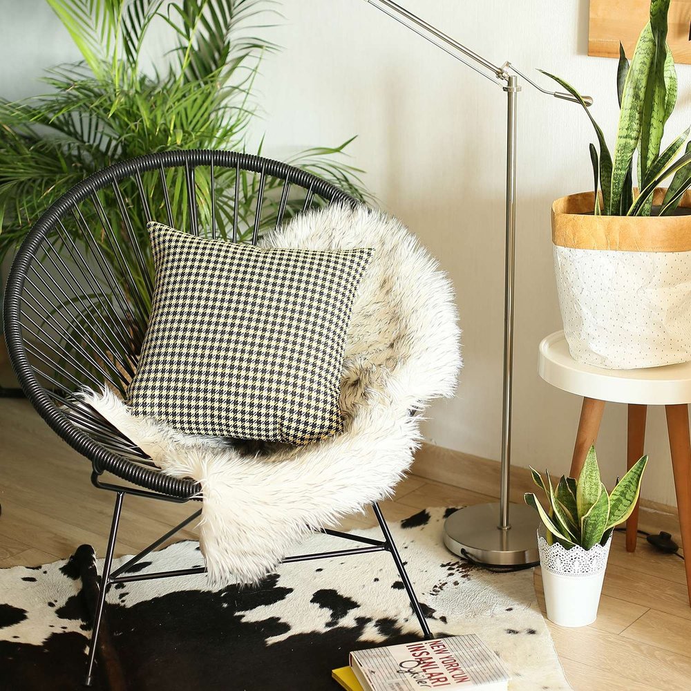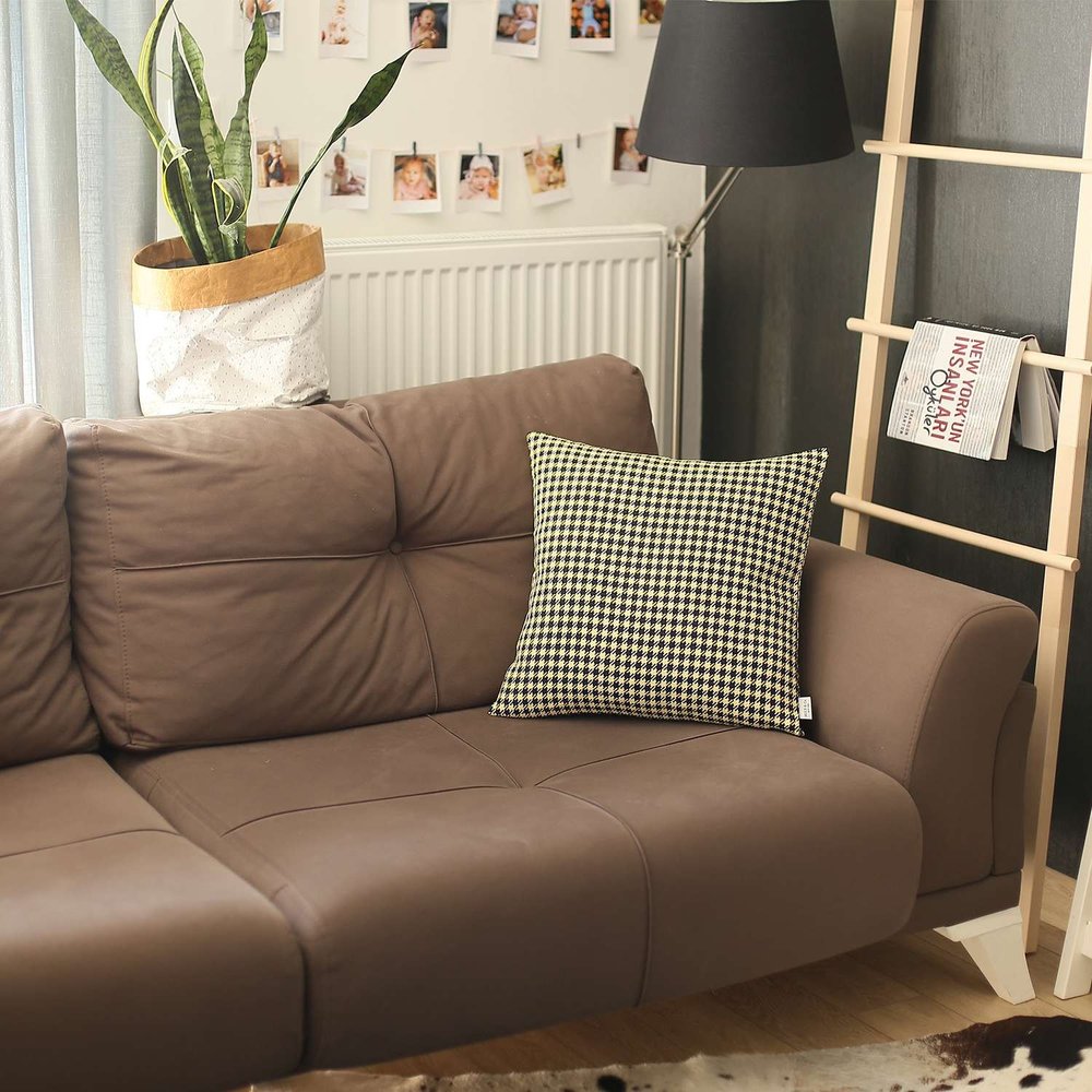 Decorate your living space with this Pale Yellow Houndstooth Pattern Throw Pillow that adheres to a classic pattern with a subtle color palette. Beautifully designed with black houndstooth patterns in jacquard weaving on a pale yellow base to keep it simple yet sophisticated amidst any surrounding. Handmade in Turkey with 100% premium polyester fabric to ensure durability and color intensity while the OEKO-TEX Standard 100 certification speaks of its top-notch product quality and safety. The edges feel smooth and refined due to its hidden zipper closure while the soft poly filling contributes to its fluffy look and comfort. Aligning with the aesthetics of contemporary styling, this decorative throw pillow will add an understated elegance to your modern home. 18” x 18” x 1”