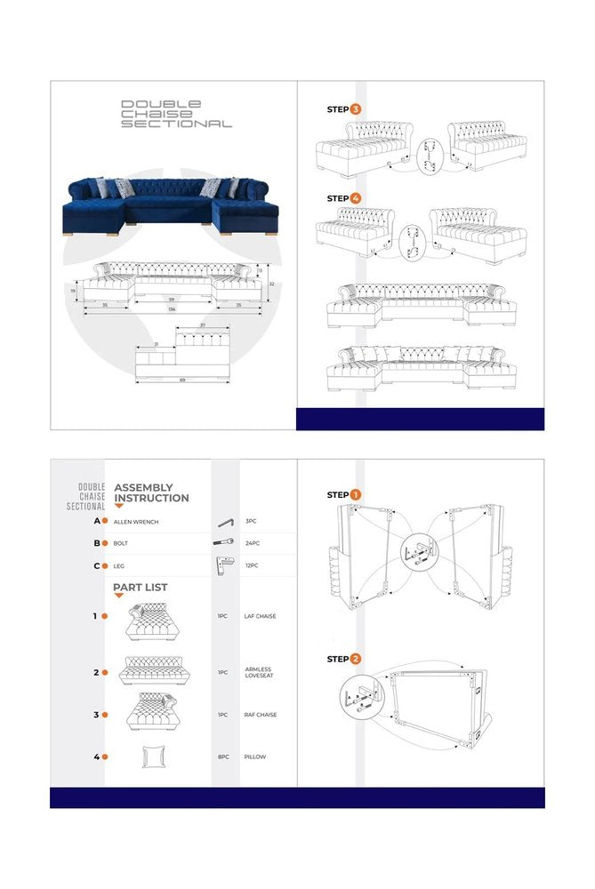 Designed for comfort and good looks, this pink velvet u shaped three piece sofa and chaise sectional with toss pillows is a great option to anchor your space. Solid colors give you lots of decorative options and are easy to work into your decor scheme. With a u-shape, designed for lounging on both sides, this high quality furniture piece creates a modern, unique, and stylish look for your space. The addition of accent pillows, gold accents, and tufted stitching pattern adds visual interest and fine designer detailing, making this a great option for both everyday lounging and for entertaining. 32.00-inch h x 136.00-inch w x 69.00-inch d.