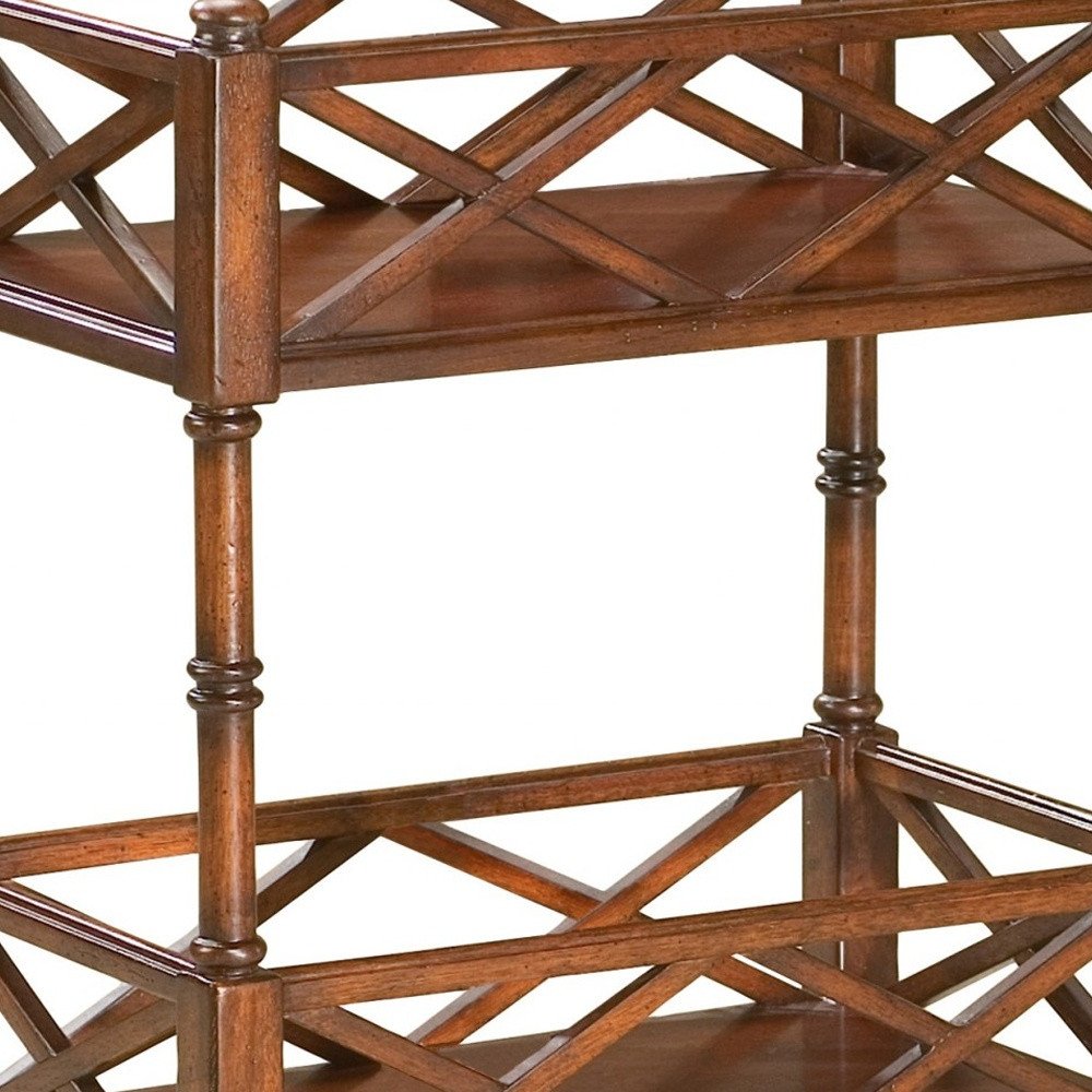 Quintessential in style is the Plantation Cherry Mobile Server table. Crafted from selected hardwood and a matching cherry veneer this server is the perfect addition to any vintage decor. The two shelves have been aesthetically designed to carry any kind of serving. Carved to perfection are the four strong pillars which conclude with brass finished casters for easy movability. 30" x 19" x 12"