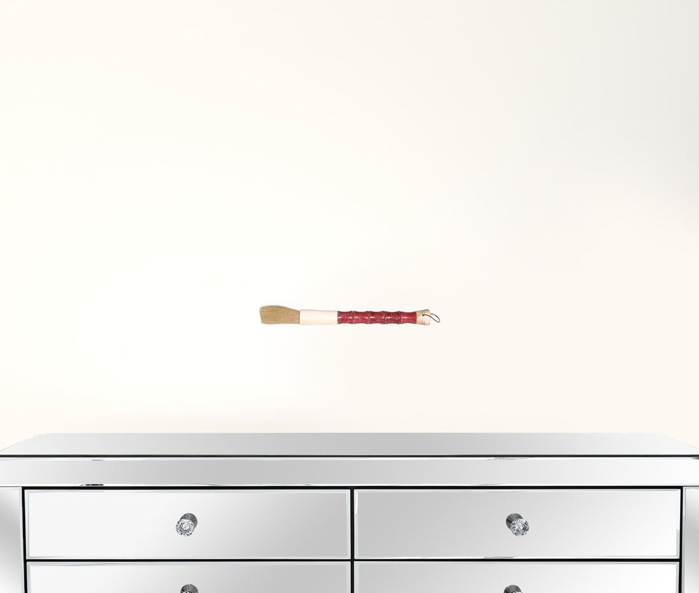 This red spotted jade faux bamboo decorative calligraphy brush will add a beautiful and unique accent to your decor. Inspired by the origins of calligraphy, this brush is now used as a decorative accent known as a sign of peace. Made of jade, which is known to be a gem of nobility and royalty, combined with fine horsetail for the brush, this unique accent is sure to be a statement piece. Can hang on the wall or use as tabletop accent. Instantly liven up your space with this art that brings color and dimension to your space.1" H x 12" W x 1" D