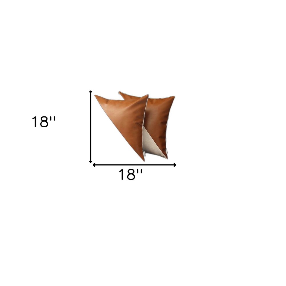 Standing on the verge of modern artistry and a rich bohemian spirit, this Set of 2 White and Faux Leather Lumbar Pillow Covers celebrates the aesthetics of boho-chic styling. The visually striking pillow cover is diagonally bisected with one part flaunting an ivory white polyester fabric that reflects light while the other half features a rustic brown vegan faux leather for a countryside vibe. To ensure optimum quality and product safety, the fabric is OEKO-TEX Standard 100 certified. The soft lumbar pillow would feel like one unified piece due to its hidden zipper closure all around. Handmade in Turkey, this set of 2 pillow covers will add an exotic style to your home. 18” x 18” each. Set of 2.