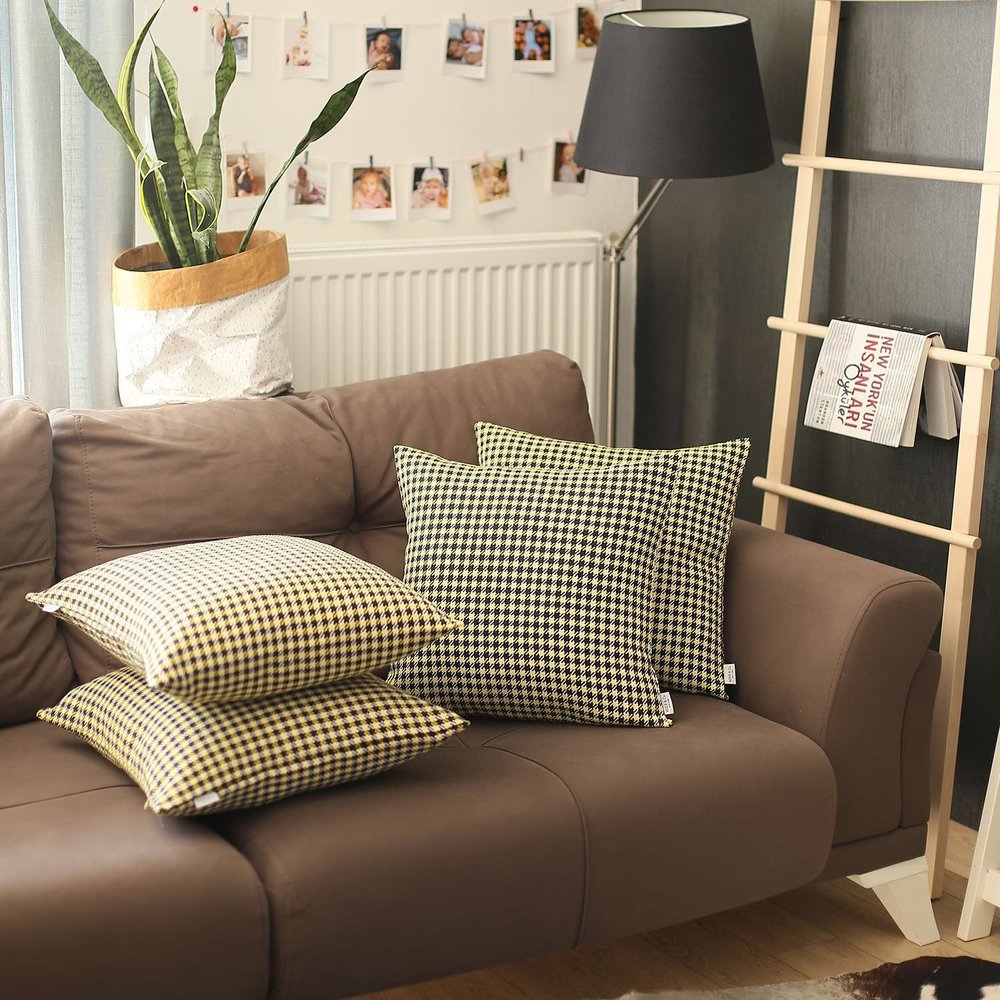 Set Of 4 Pale Yellow Houndstooth Pillow Covers
