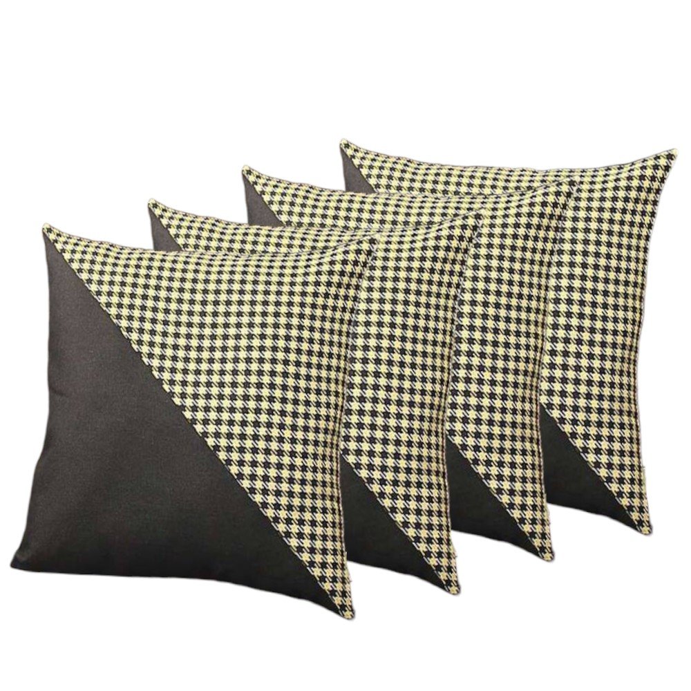 Set of Four 18" Black and Yellow Houndstooth Fabric Throw Pillows