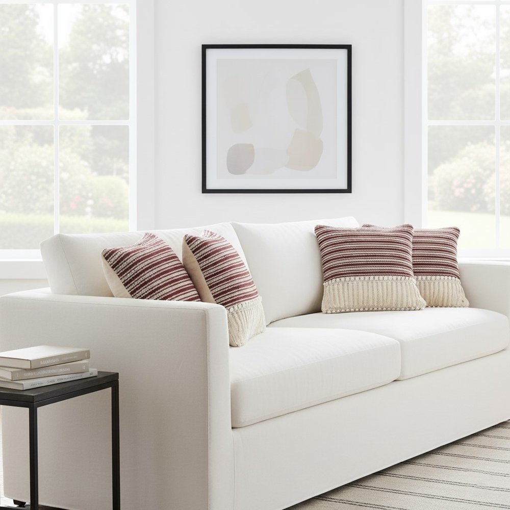 This set of four 20-inch maroon and black striped cotton throw pillow covers will add a beautiful decorative accent to your decor. These great looking soft decorative pillow covers are expertly made of durable and long lasting cotton in a maroon and black coloration. Decorative pillow covers are a great way to change up the look and feel of your space easily and quickly. Combine with your own fill or insert to add decoration and dimension to your favorite chair, accent your sofa, or to use as part of your bed ensemble. 20.00-inch h x 20.00-inch w x 0.25-inch d.