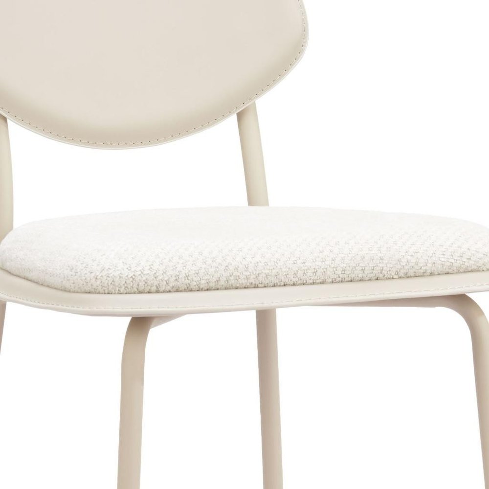 Bring a trendy bar vibe to your space, with this set of four 26-inch light gray fabric faux leather and steel counter height bar chairs. The mix of sturdy polyester cushioned fabric seats and faux leather comfy partial backs give these powder coated steel bar chairs a neutral look that is easy to blend into many settings. These durable and stylish chairs will add a touch of clean and modern style to your space. 36.80-inch h x 18.70-inch w x 22.00-inch d.