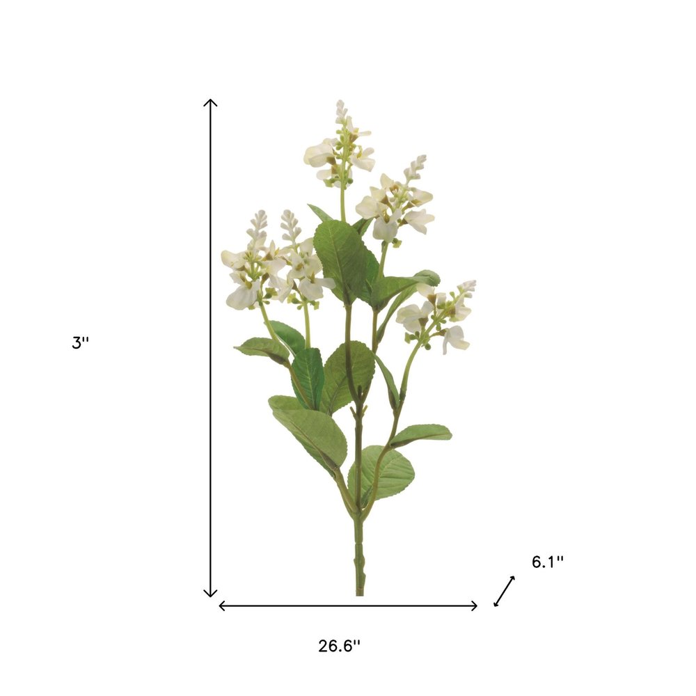 Set of six 27-inch white and green artificial flowering brings effortless elegance to your home decor. This tabletop arrangement features vibrant white and green hues that enhance any space with a refreshing touch. Designed for convenience, these artificial plants are perfect for those who want to enjoy the beauty of flowers without the maintenance. Ideal for celebrating the harvest season, they make a charming addition to your festive decor. Made from durable plastic, these flowers will retain their beauty year after year. With six plants included in this set, you can easily create a cohesive look in your living room, dining area, or office space. Elevate your home aesthetics with this stunning floral collection. 3.00-inch h x 26.60-inch w x 6.10-inch d.
