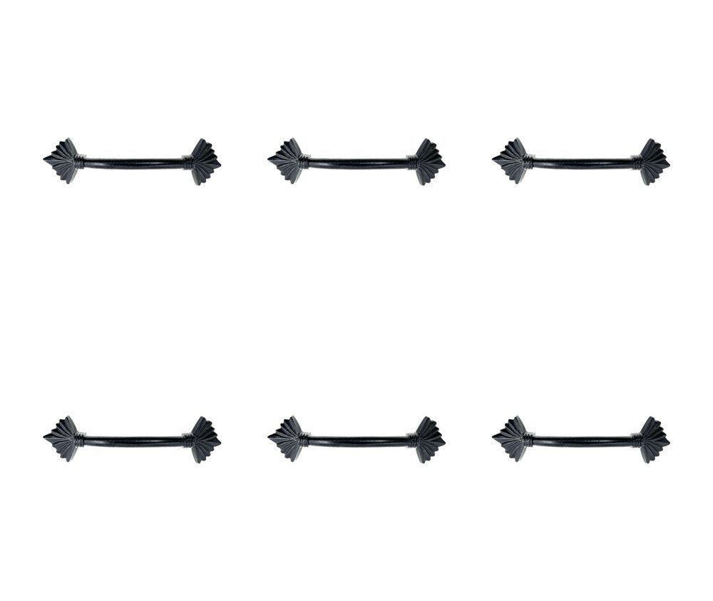Give your drawers or cabinets a facelift with this set of six antiqued silver metal drawer pull knobs. Hand-painted by talented artisans, these knobs will add a touch of artisanal design. Crafted from durable metal, these knobs provide both style and strength. Each knob is carefully hand-painted, ensuring a unique finish that enhances any decor. With screws included, installation is a breeze, allowing you to upgrade your furniture effortlessly. This set of six provides ample replacements for all your needs while elevating the aesthetic appeal of your space. 6-inch h x 6.5-inch w x 6-inch d.