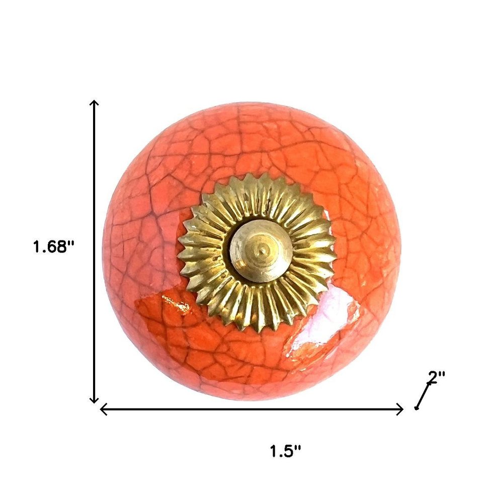 Transform your space quickly and easily with this set of six coral and gold ceramic drawer pull knobs. Hand-painted by talented artisans, these knobs will add a touch of artisanal design. The round shape complements any decor style, making them a versatile choice for various furniture pieces. Crafted from high-quality ceramic, these knobs ensure durability and longevity. Each knob comes with screws included, simplifying the installation process. With their eye-catching colors and unique craftsmanship, these drawer pulls will effortlessly enhance the aesthetic of your cabinets and drawers. 1.68-inch h x 1.50-inch w x 2.00-inch d.