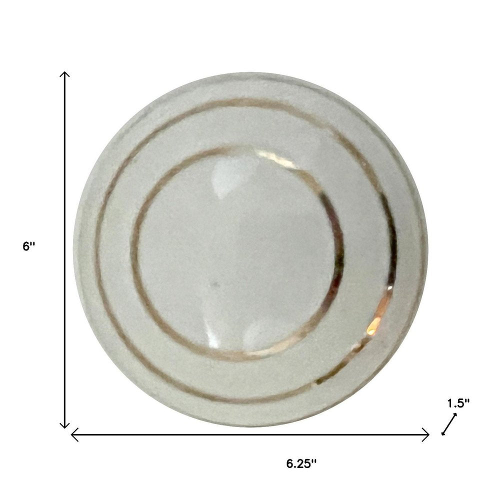 Give your drawers or cabinets a facelift with this set of six white and gold ceramic drawer pull knobs. Hand-painted by talented artisans, these knobs will add a touch of design to your space with the gold circle geometric pattern. The round shape offers a smooth, elegant profile that complements various decor styles. Crafted from high-quality ceramic, these knobs are both durable and visually appealing. Each set comes complete with screws for easy installation, making updates to your furniture effortless. Elevate your space with these stylish and functional additions that enhance both style and usability. 6-inch h x 6.25-inch w x 1.5-inch d.