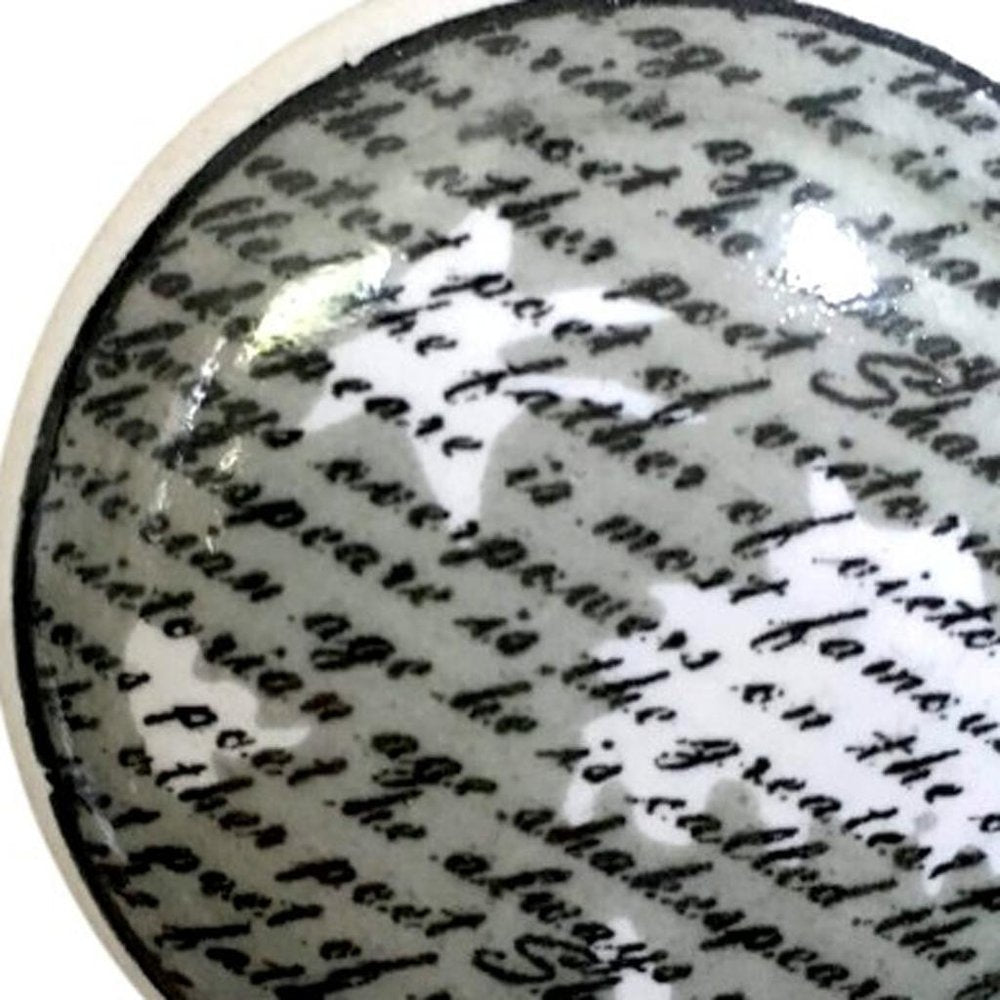 Set of Six White Poetic Script Ceramic Drawer Pull Knobs