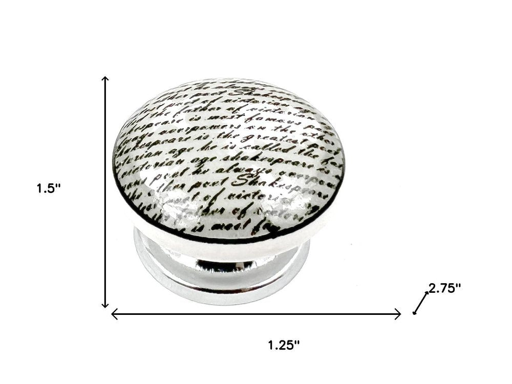 Transform your space quickly and easily with this set of six white poetic script ceramic drawer pull knobs. These round knobs exude a whimsical charm, perfect for adding a touch of personality to your furniture. Crafted from durable ceramic, they not only enhance the aesthetic but also ensure longevity. Each knob comes machine made, guaranteeing consistent quality and design throughout the set. Easy to install, the package includes screws for your convenience, making updating your decor a breeze. Elevate your cabinets and drawers with these delightful accents that effortlessly combine functionality and style. 1.50-inch h x 1.25-inch w x 2.75-inch d.